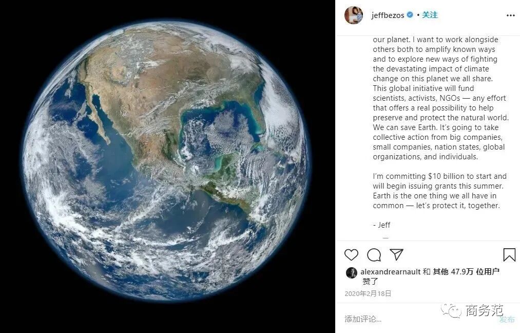 一向被说“抠门”的贝佐斯,在去年也承诺豪掷100亿美元,创立“贝佐斯地球基金”,帮助应对气候变化。目前,基金会已经向16个环保团体拨款7.9亿美元,来解决环保问题。