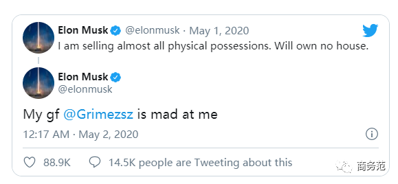 两个人的关系到底如何,外人现在也不得而知,反正在卖房子这件事上Grimes应该不太高兴,马斯克自己也说“她认为我至少应该拥有一所房子”。