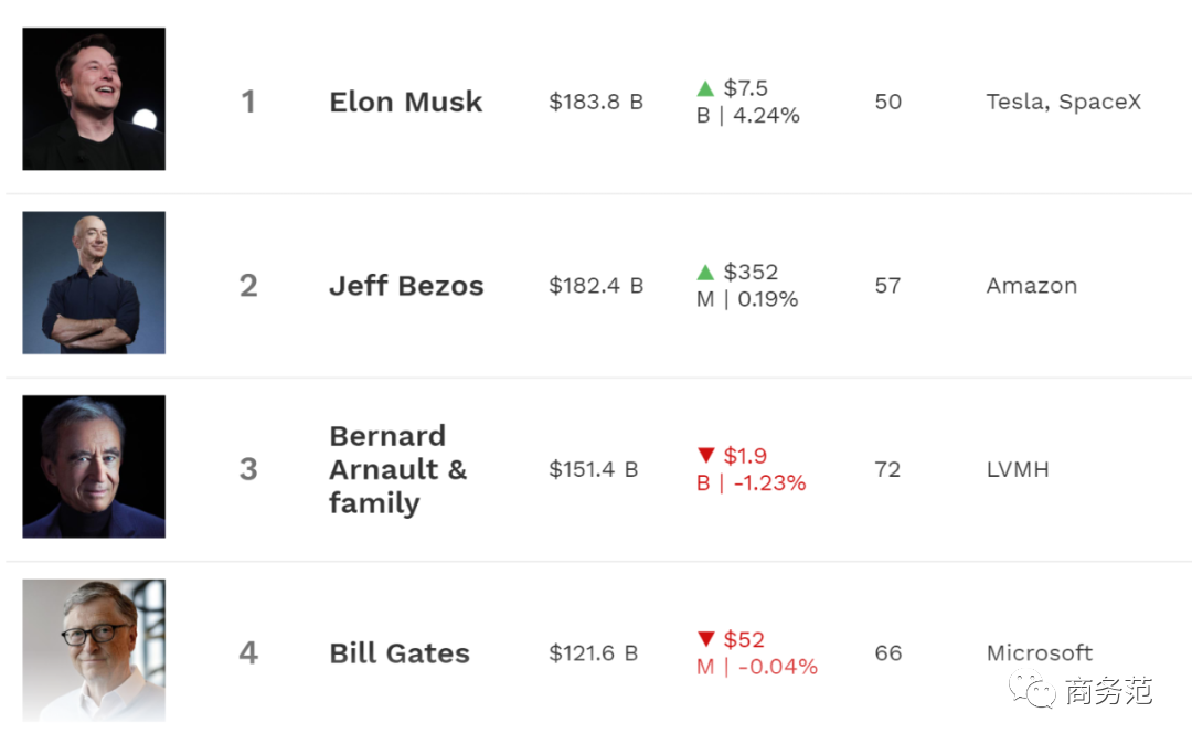 虽然首富的位子坐了3天就又被贝佐斯反超,但两人目前的财富差距非常小,处于交替当首富的态势,也把阿尔诺和比尔·盖茨远远甩在身后。