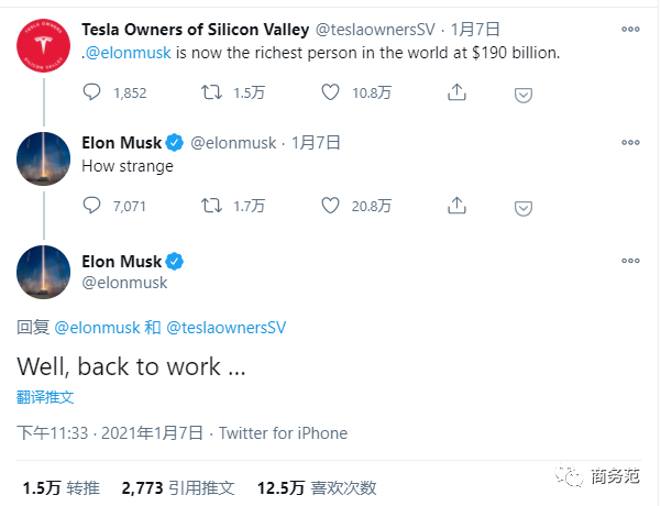 成为新首富后,马斯克的第一个回应是:好,我回去工作了……网友们纷纷表示:这也太凡尔赛了。