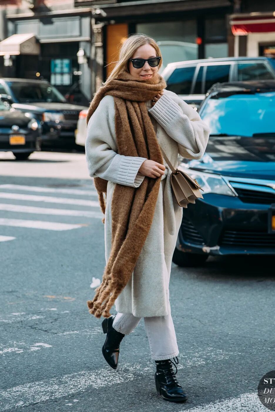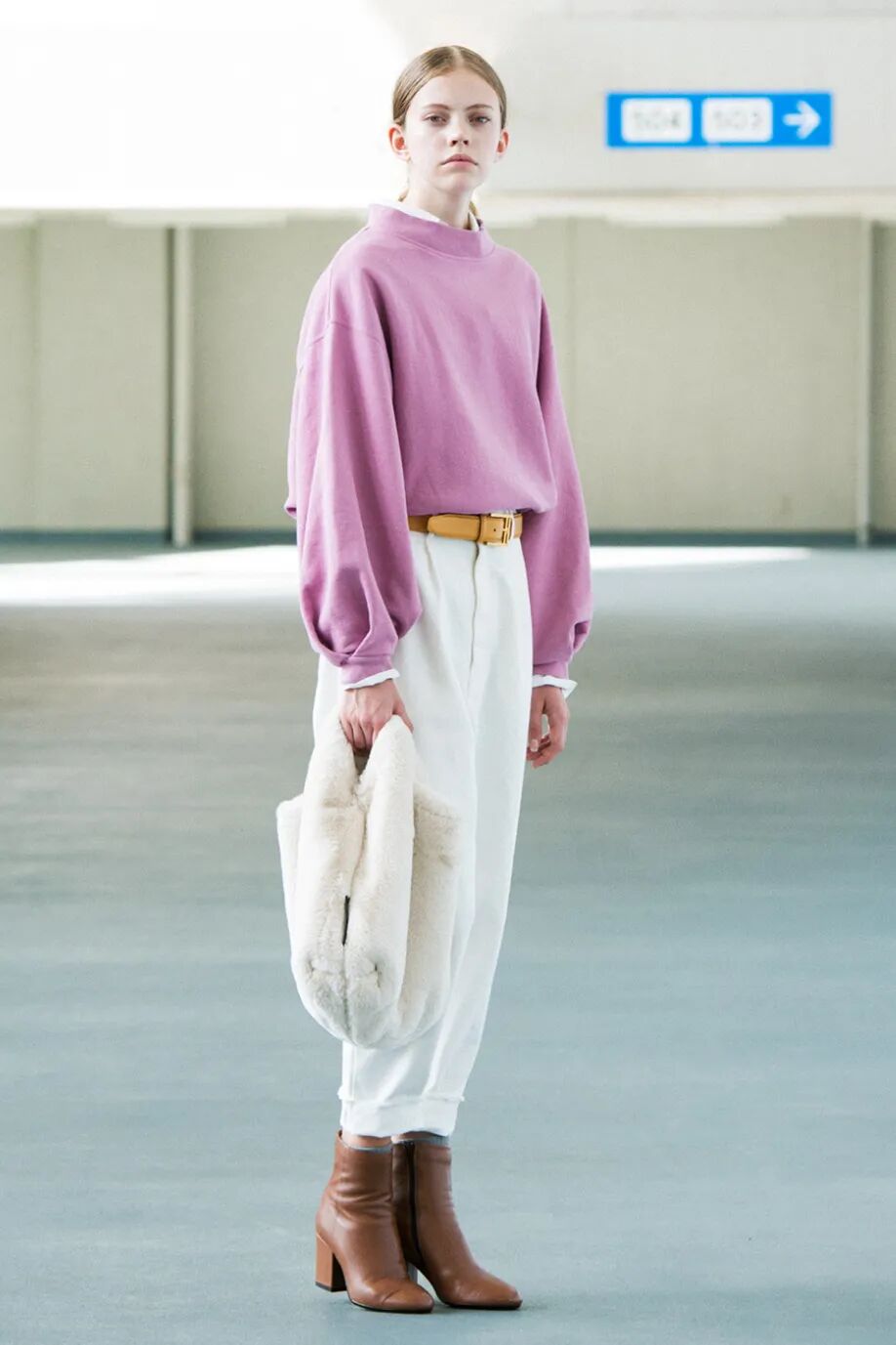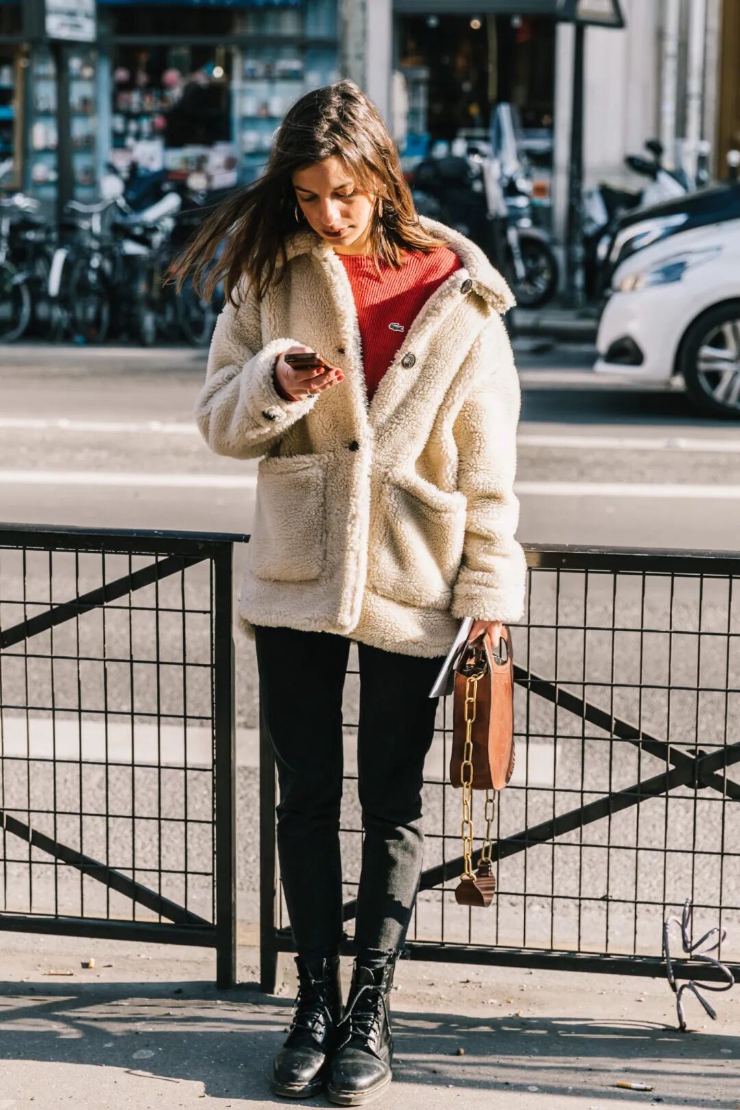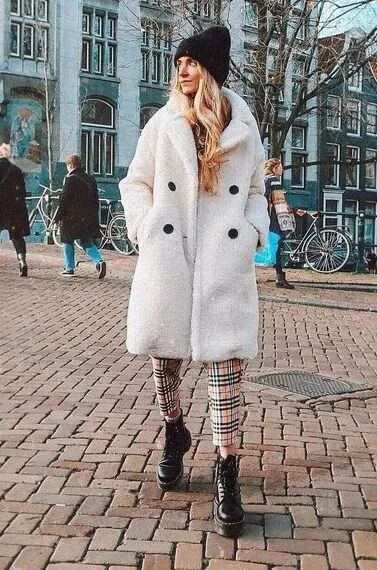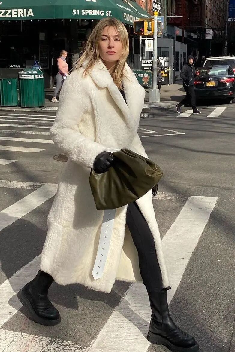 特别是这种易显浮夸老气的毛绒仿皮草外套,混搭九分直筒裤+短靴绝对是最正确时髦的打开方式了,