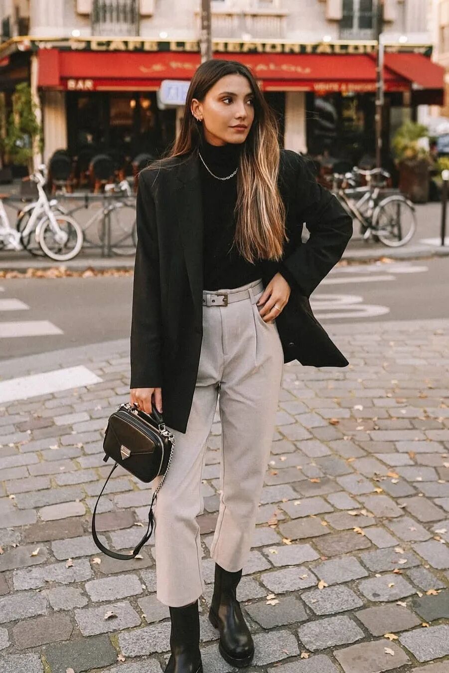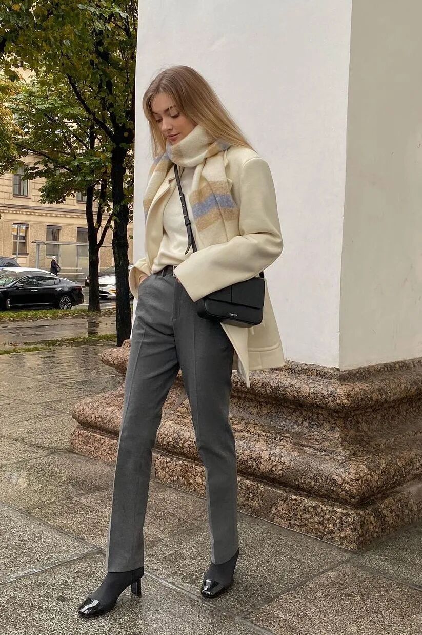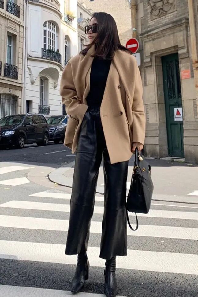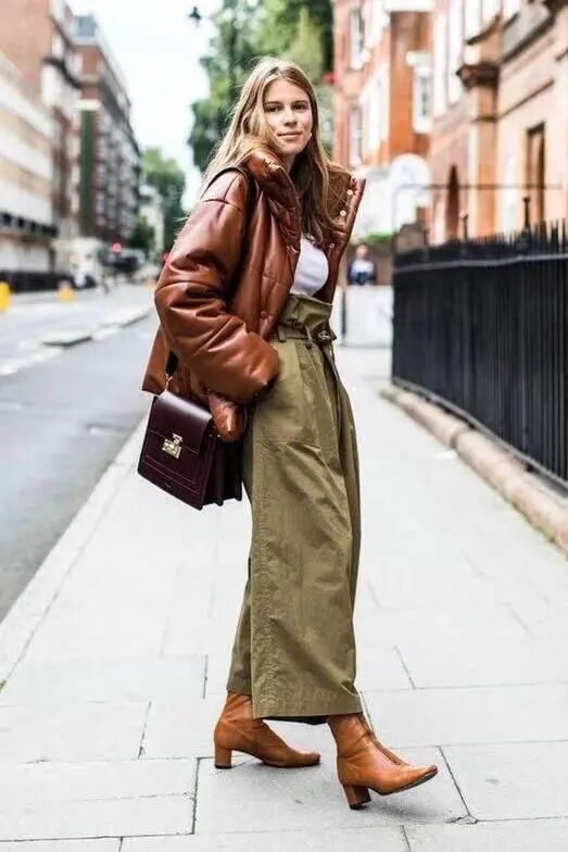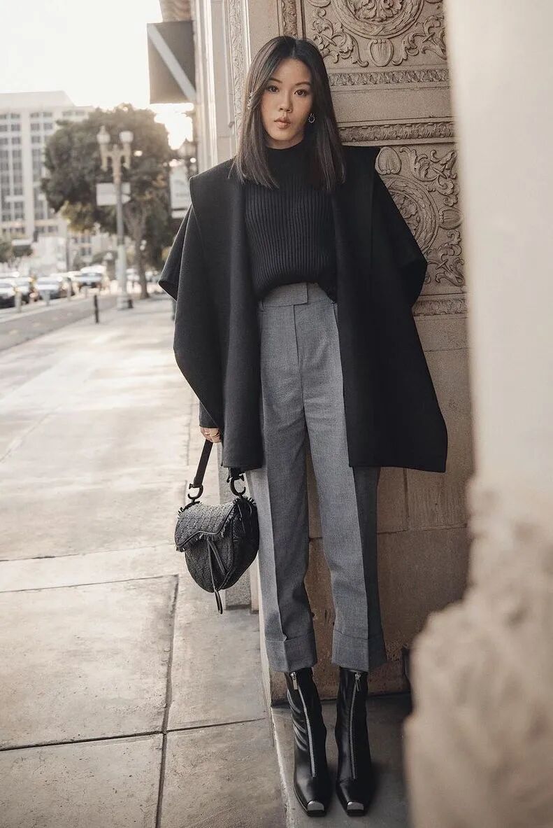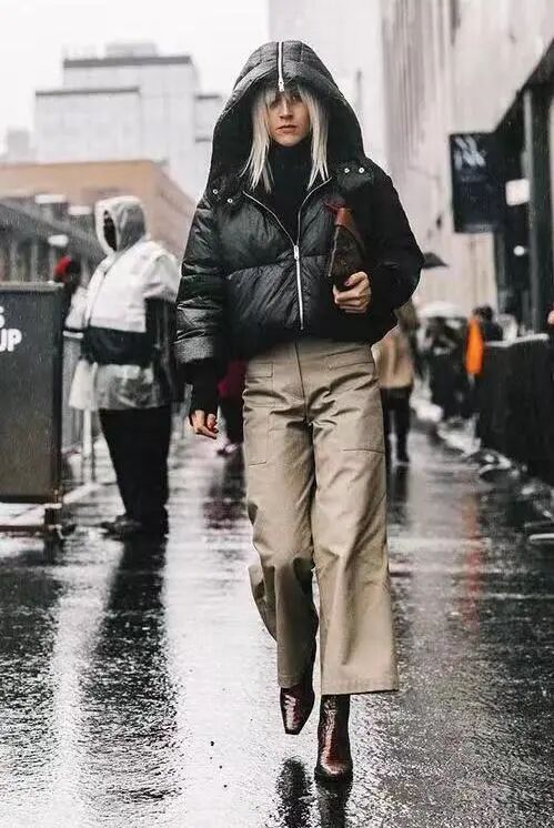 小个子星人想要显高效果更出色,用短外套与九分阔腿裤+粗跟短靴搭配无疑会是最佳选择,