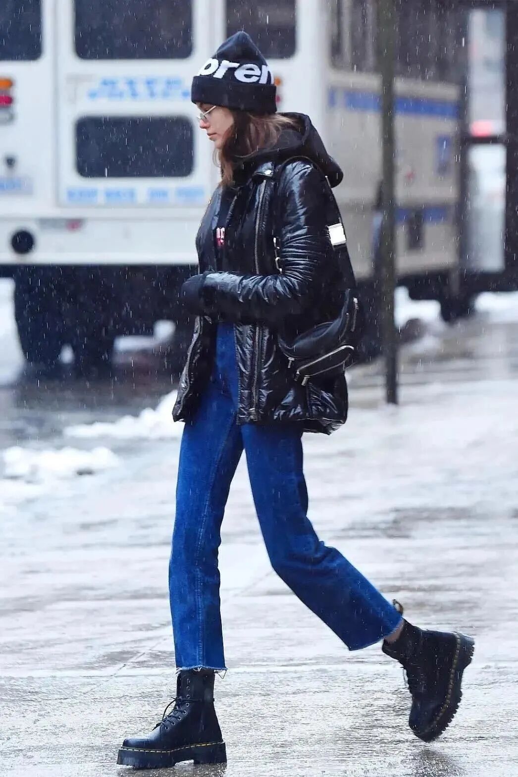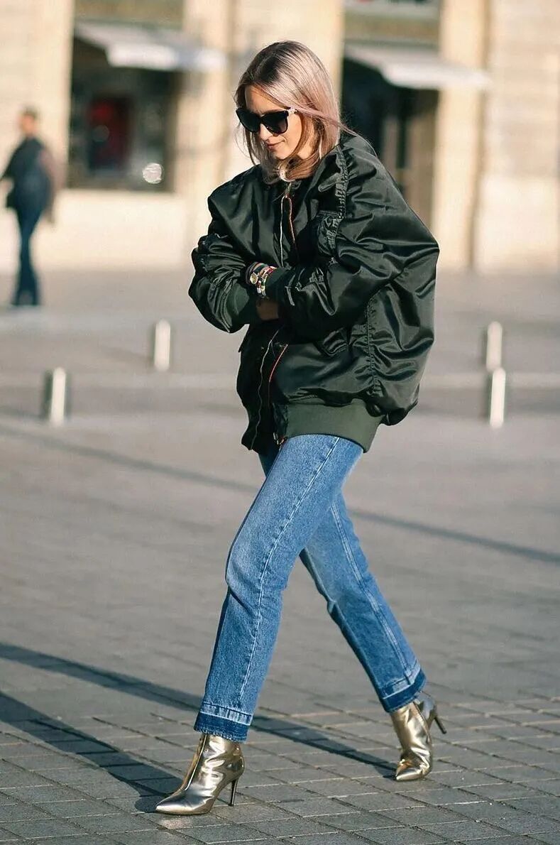 九分直筒裤+短靴和卫衣、夹克等同属休闲街头风格的单品自然最是般配,率性又很有活力。