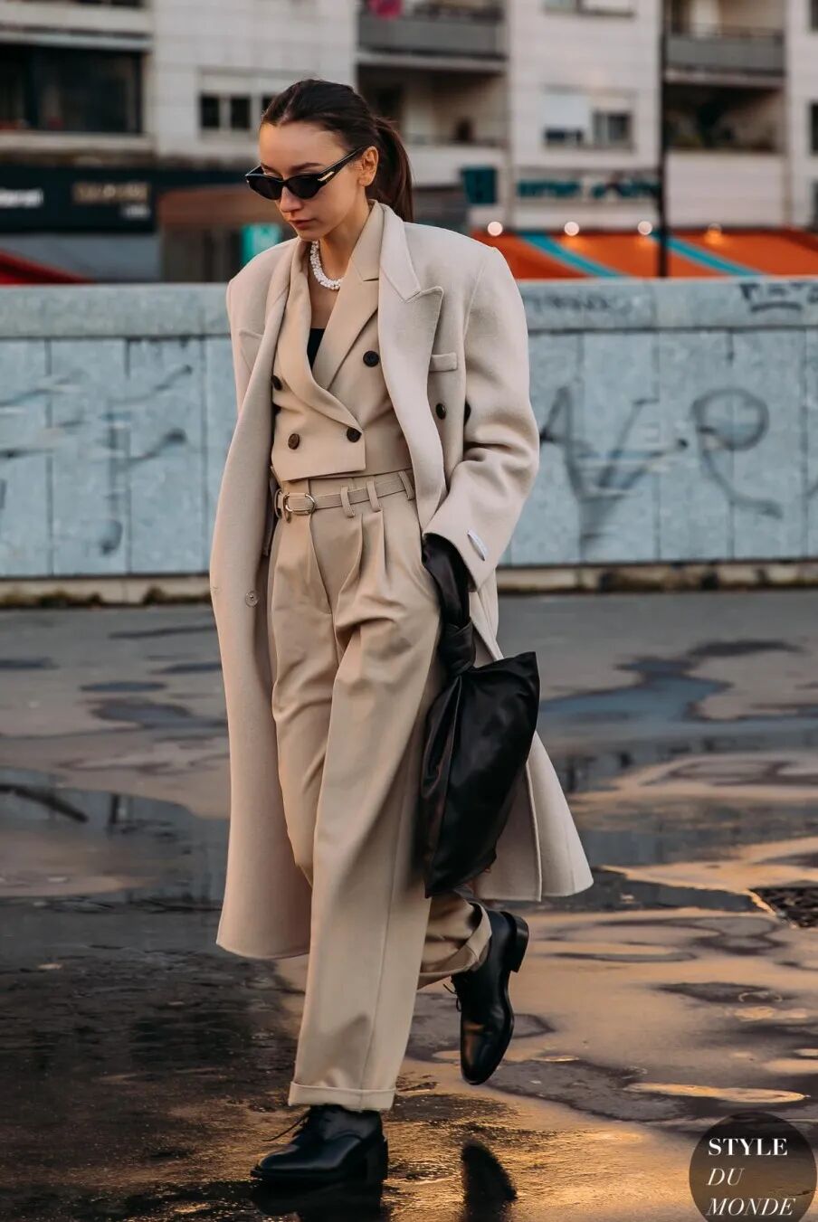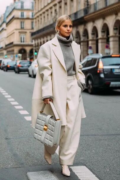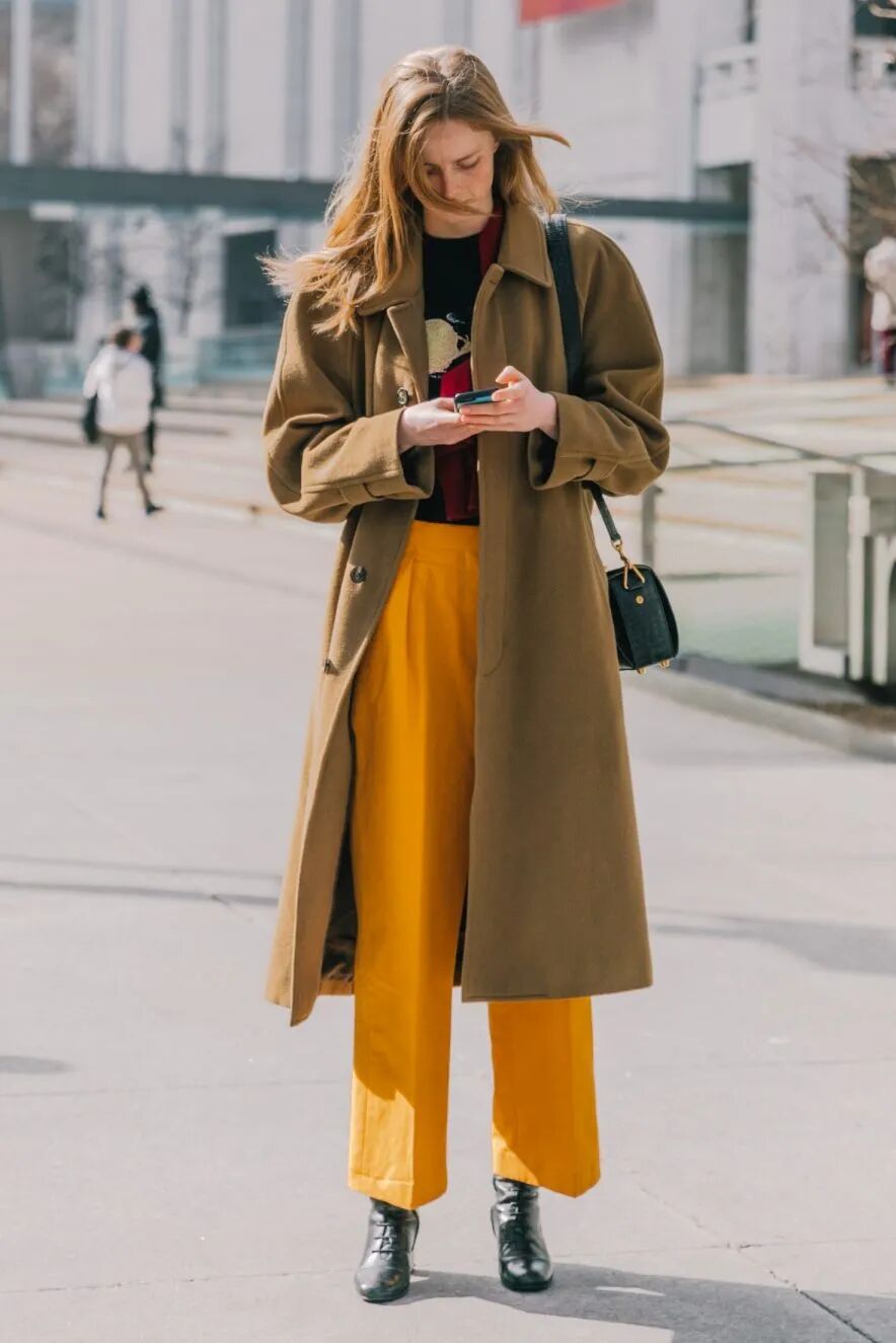不过需要注意的是,大衣的长度绝对不要超过九分阔腿裤的裤长,否则不仅造型会显得拖沓,还会容易有压个子的反效果。