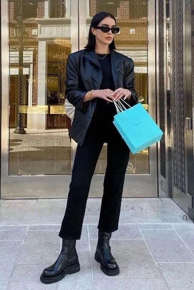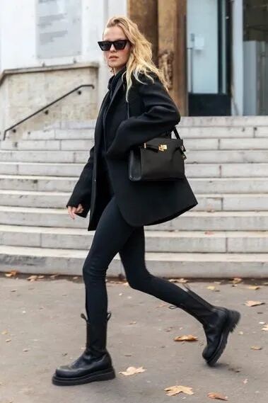 今季最流行的当属”紧身鲨鱼裤+小黑靴“这对最强拍档了。