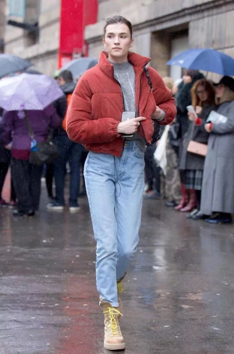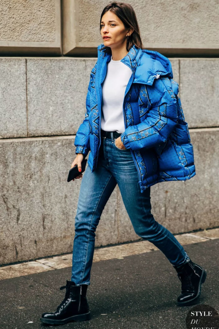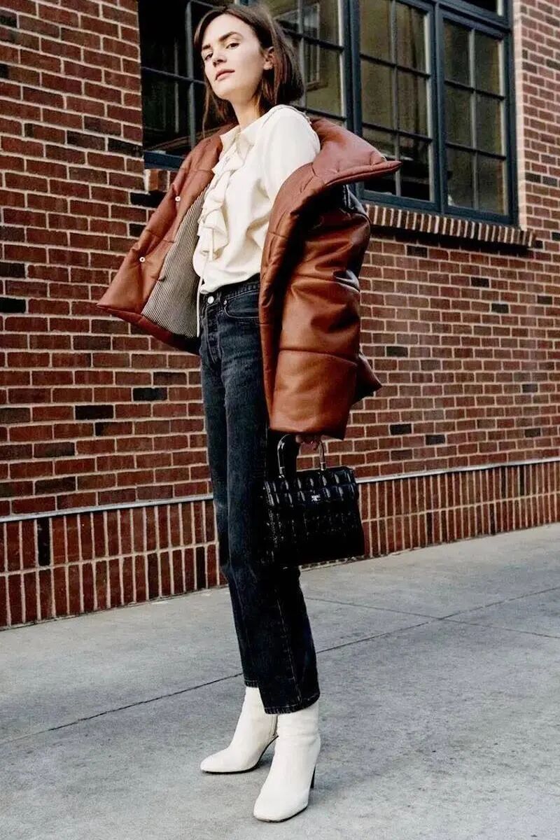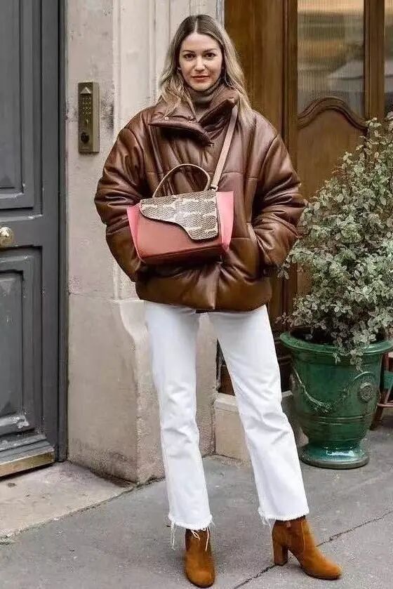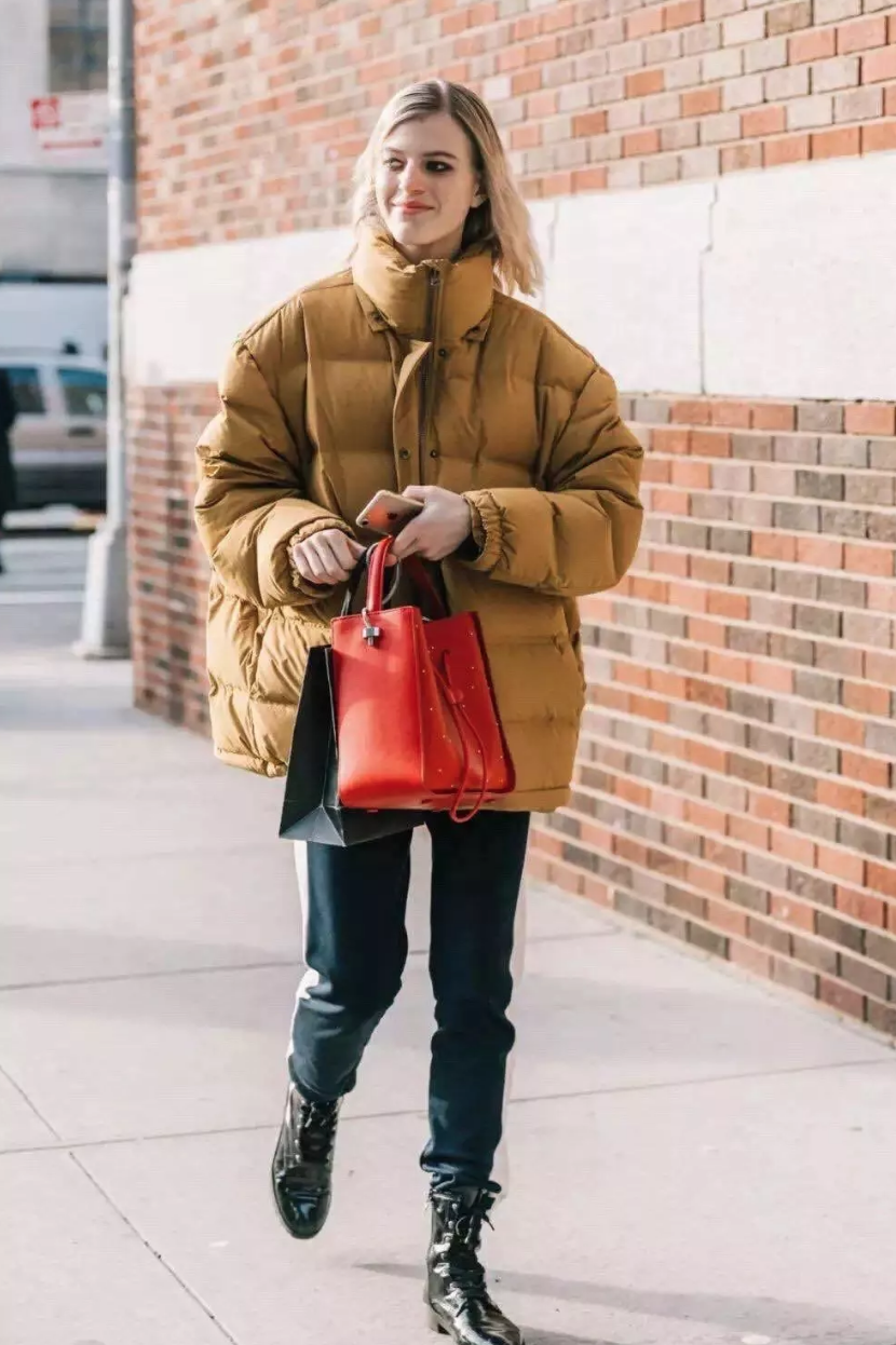冬季里容易显臃肿的羽绒服、羊羔绒外套等,这样穿搭便能显得利落清爽许多,