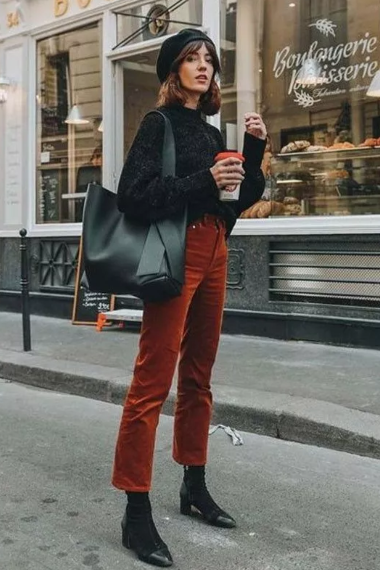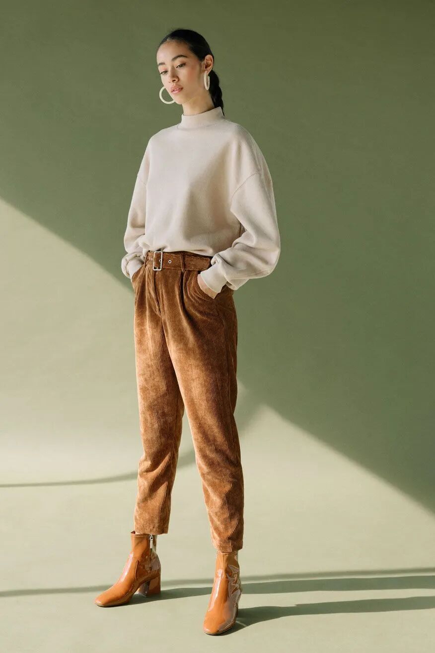 又或是腔调十足的复古灯芯绒烟管裤,配上一双极简短靴,便足以让你的冬季look焕发新鲜活力,轻松甩路人十条街。