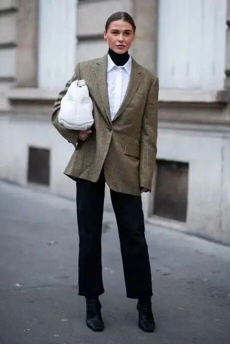 首先九分烟管裤的裤型最能够扬长避短优化腿部线条,加上它自带的干练标签,会让你整个人看起来非常大气优雅,气质与气场并存。