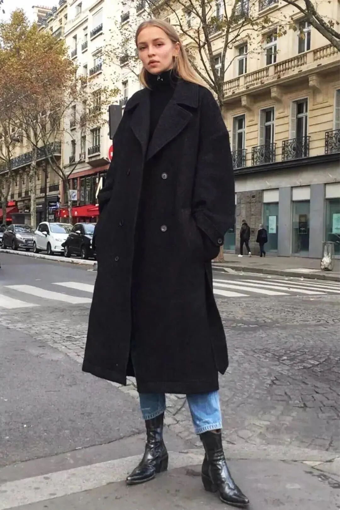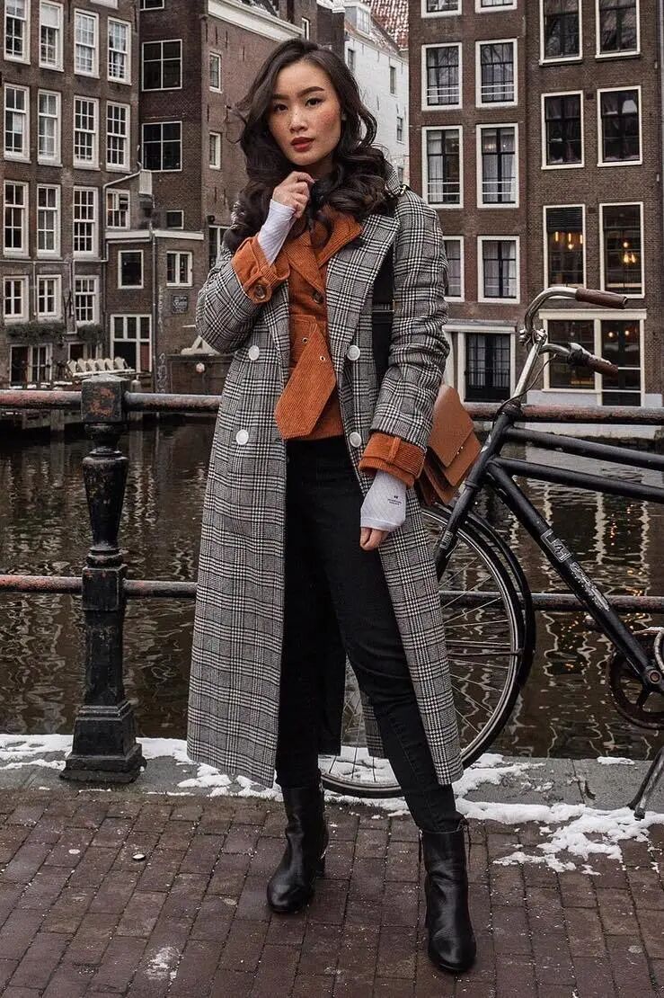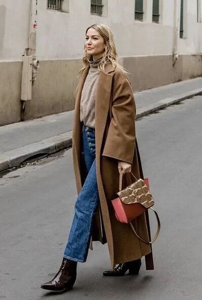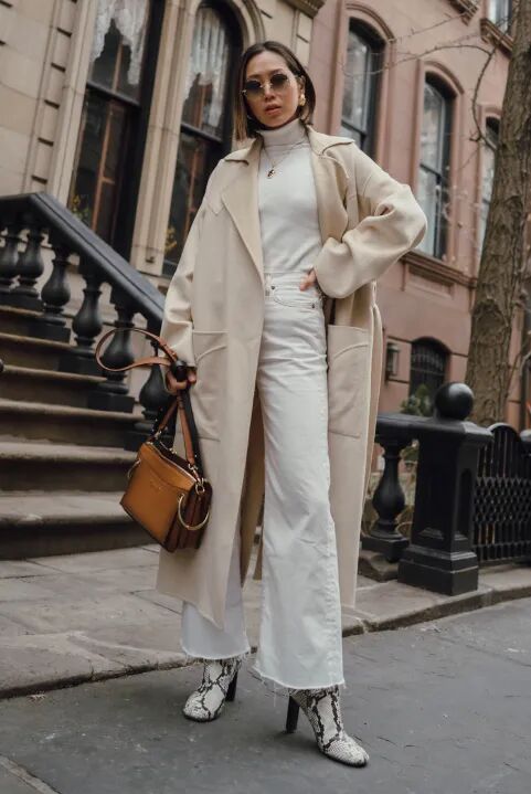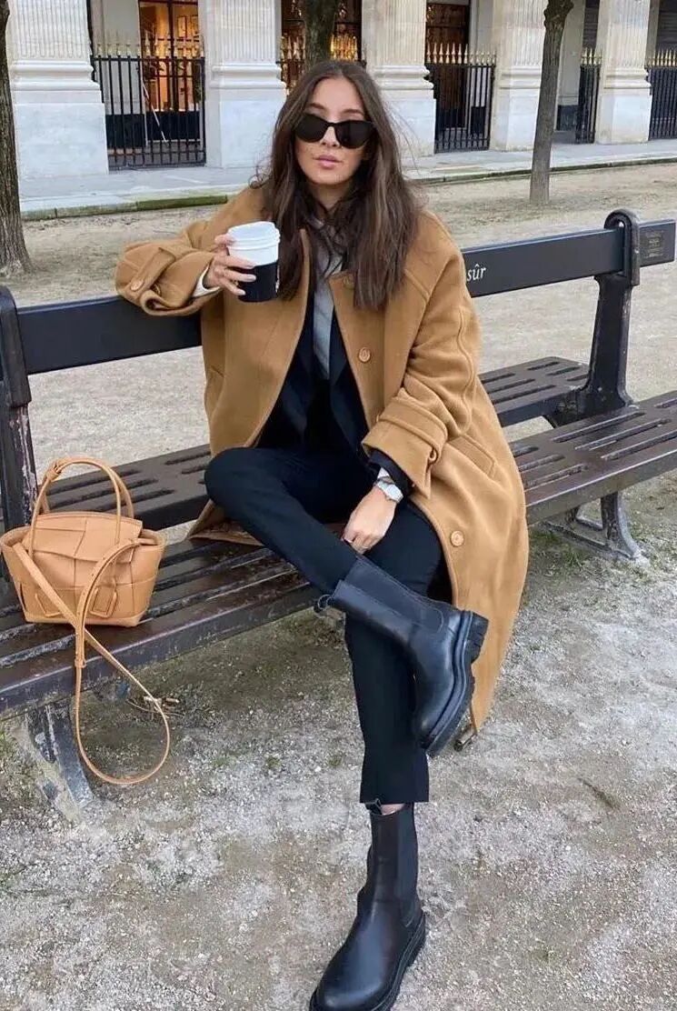 长大衣+九分阔腿裤+短靴则是冬季标配组合,风度与温度兼具,显贵耐看的。