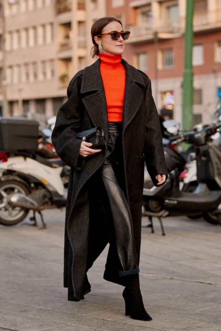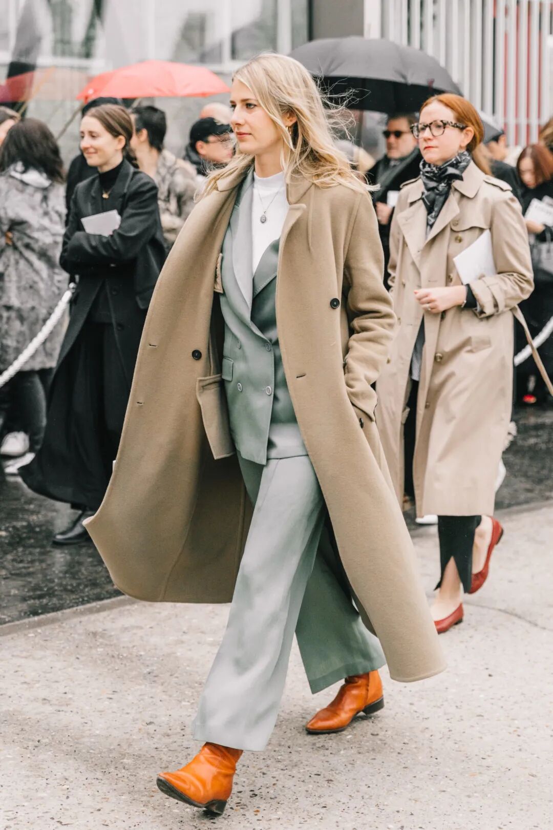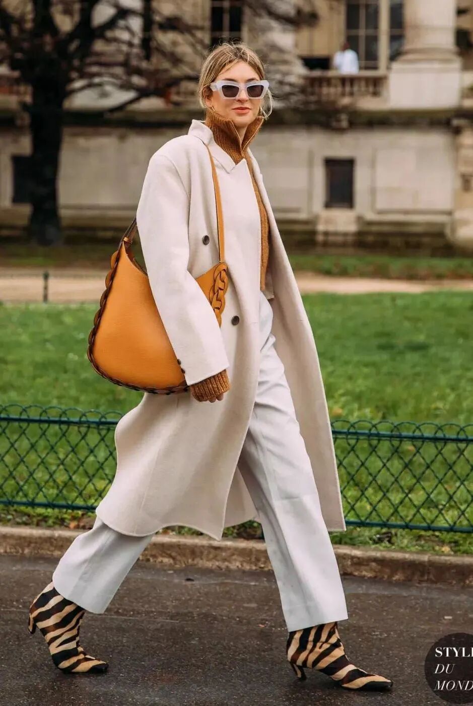 长大衣+九分阔腿裤+短靴则是冬季标配组合,风度与温度兼具,显贵耐看的。