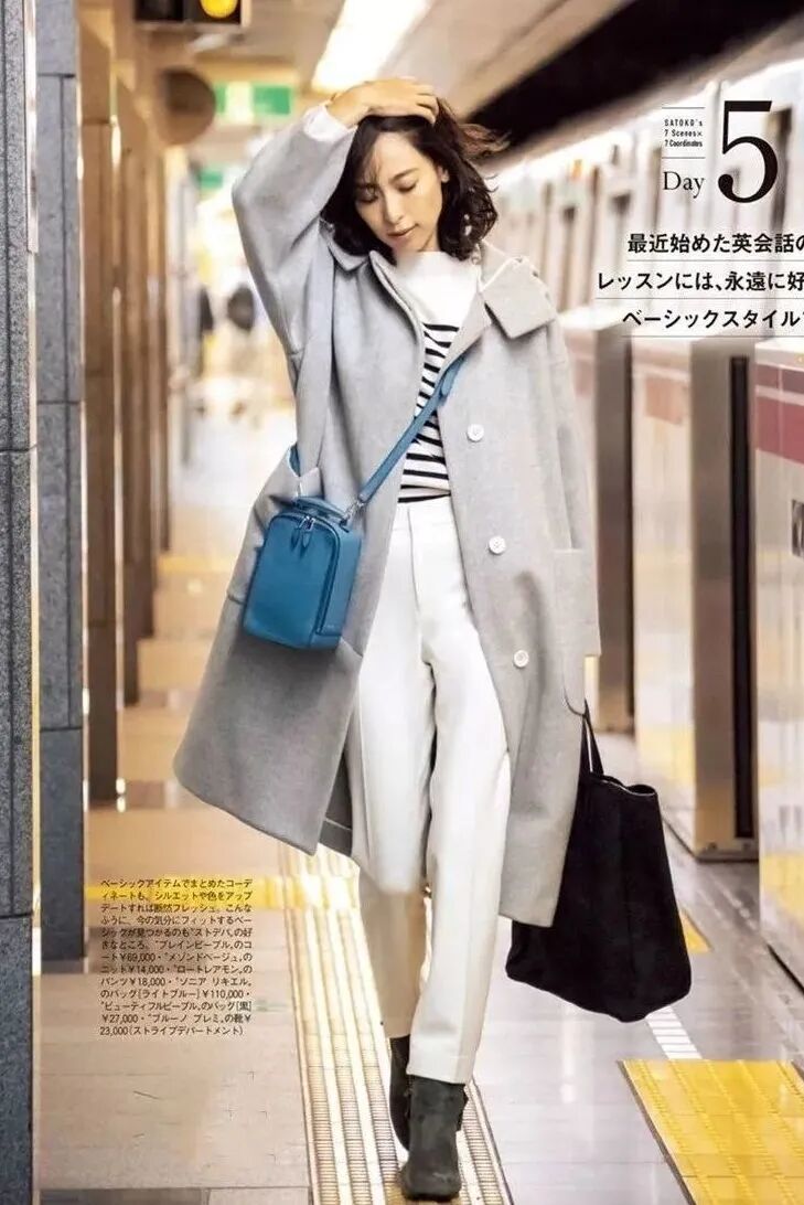 九分紧身裤和上衣外套穿搭的时候,最适合借鉴“上松下紧”的经典穿搭套路。