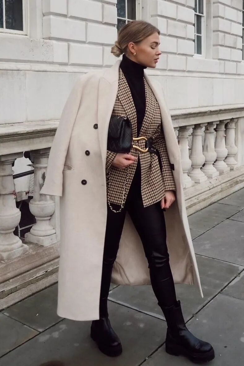 腿型不直的姐妹也无需担心hold不住紧身的九分裤型,你只需要再外搭一款H型长外套,便能够抵御寒风又修饰腿型,轻轻松松即可赢很大。